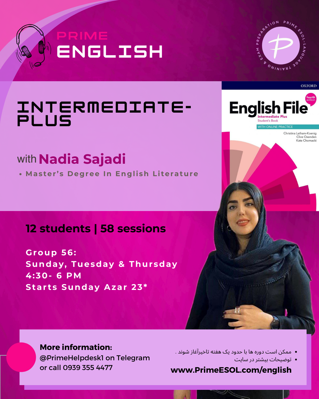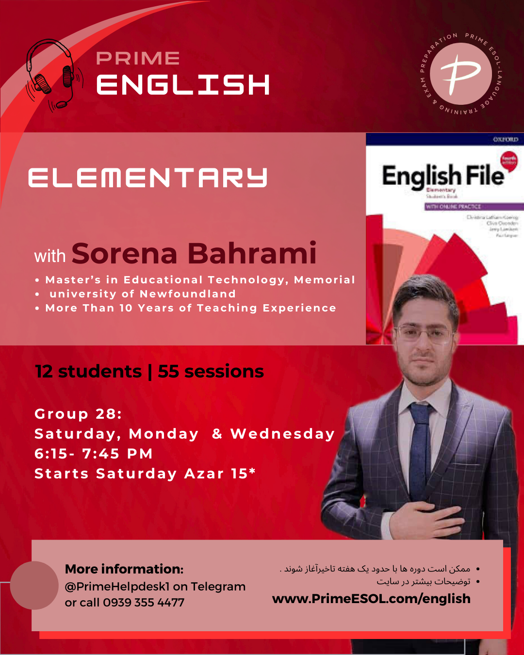 – منبع آموزشی مورد استفاده برای دوره های اصلی، کتاب English File، ویرایش چهارم (نسخه بریتیش) میباشد.